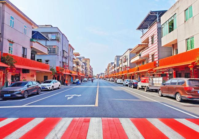 对吉祥大道、中兴街、东升街、侨苑路、南兴街等主干道进行道路管网配套设施提升、三线整治及非机动车道建设,统一店铺招牌色彩规格,安装完善道路交通照明设施,并划定120个停车位。改造后的主干道“魅力值”大幅提升,全长2.2公里,沥青柏油路笔直向前,交通标识清晰醒目,干净、整洁、安全、有序,大大提升群众出行便利。