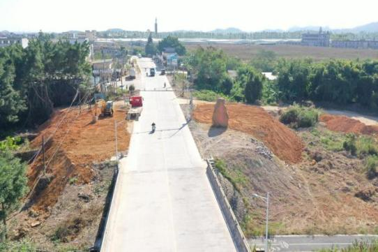 升级改造东成镇绵湖桥头至山仔顶路段,全长657米、宽12米。作为东成镇的重要门户,美观且具有特色,为东成镇增添了新的风景线。道路沥青全面铺设,两旁增设非机动车道,乔木樟树亭亭玉立,巧妙融合东成精神和发展定位的入口通道标识矗立在路旁,绿化带内鲜花盛开、绿植错落有致,以其独特的魅力吸引着人们的目光。设置东成精神和发展定位等特色标志,打造美观且具有特色的乡镇入口通道。